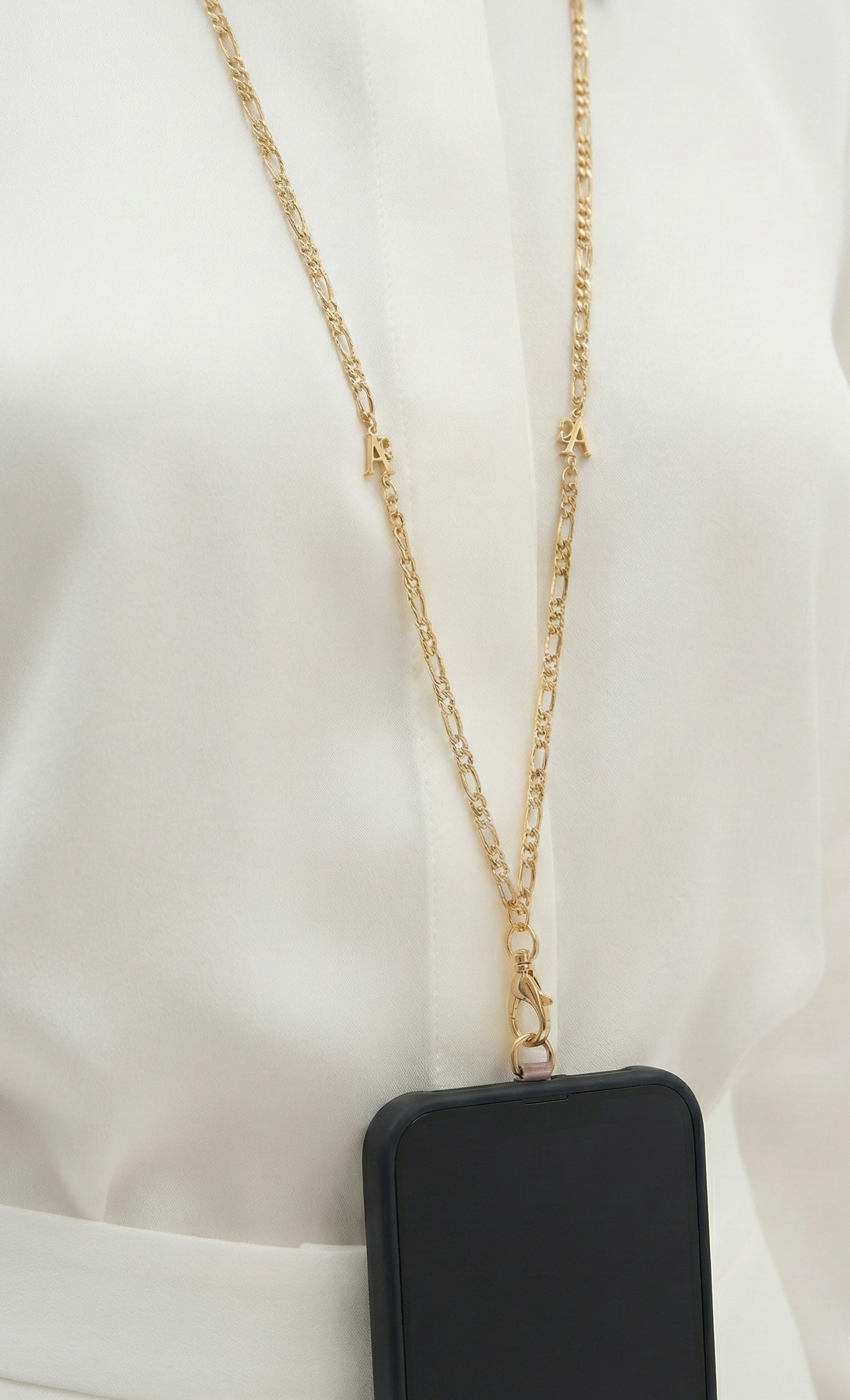 Questa collana portatelefono unisce funzionalità e stile in un accessorio pensato per accompagnarti ogni giorno con eleganza. Realizzata con una catena dal carattere deciso e una piastrina personalizzata con il nuovo monogram AC., reinterpretato in forma stilizzata, diventa un elemento distintivo della tua quotidianità.